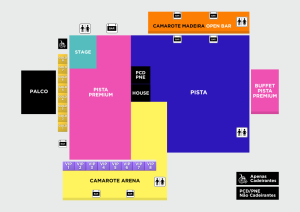 ACESSO: Pista (espaço azul) | Camarote Arena (espaço amarelo).