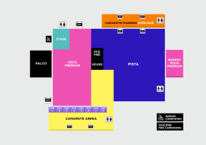 ACESSO: Pista (espaço azul) | Camarote Arena (espaço amarelo).